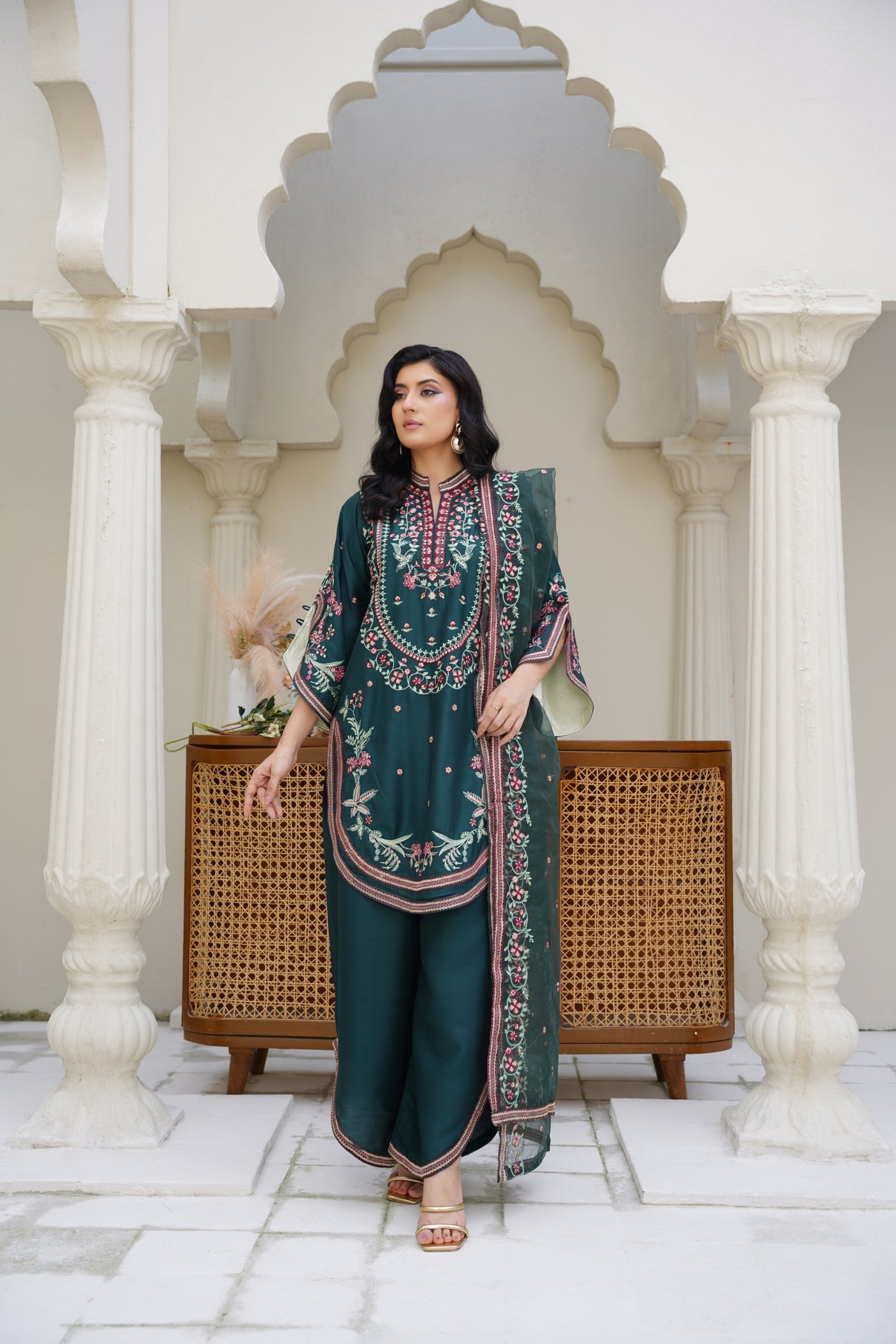 Rania – Deep Green Viscose 3Pc Suit is a ready-to-wear ensemble crafted for comfort and refined style. The premium viscose shirt offers a smooth drape and breathable wear, while delicate embroidery adds subtle charm. Paired with a lightweight organza dupatta, this set balances luxury and ease — ideal for family functions, festive evenings, and formal gatherings. Shop Rania for an effortless, elegant look that’s ready to wear right away.