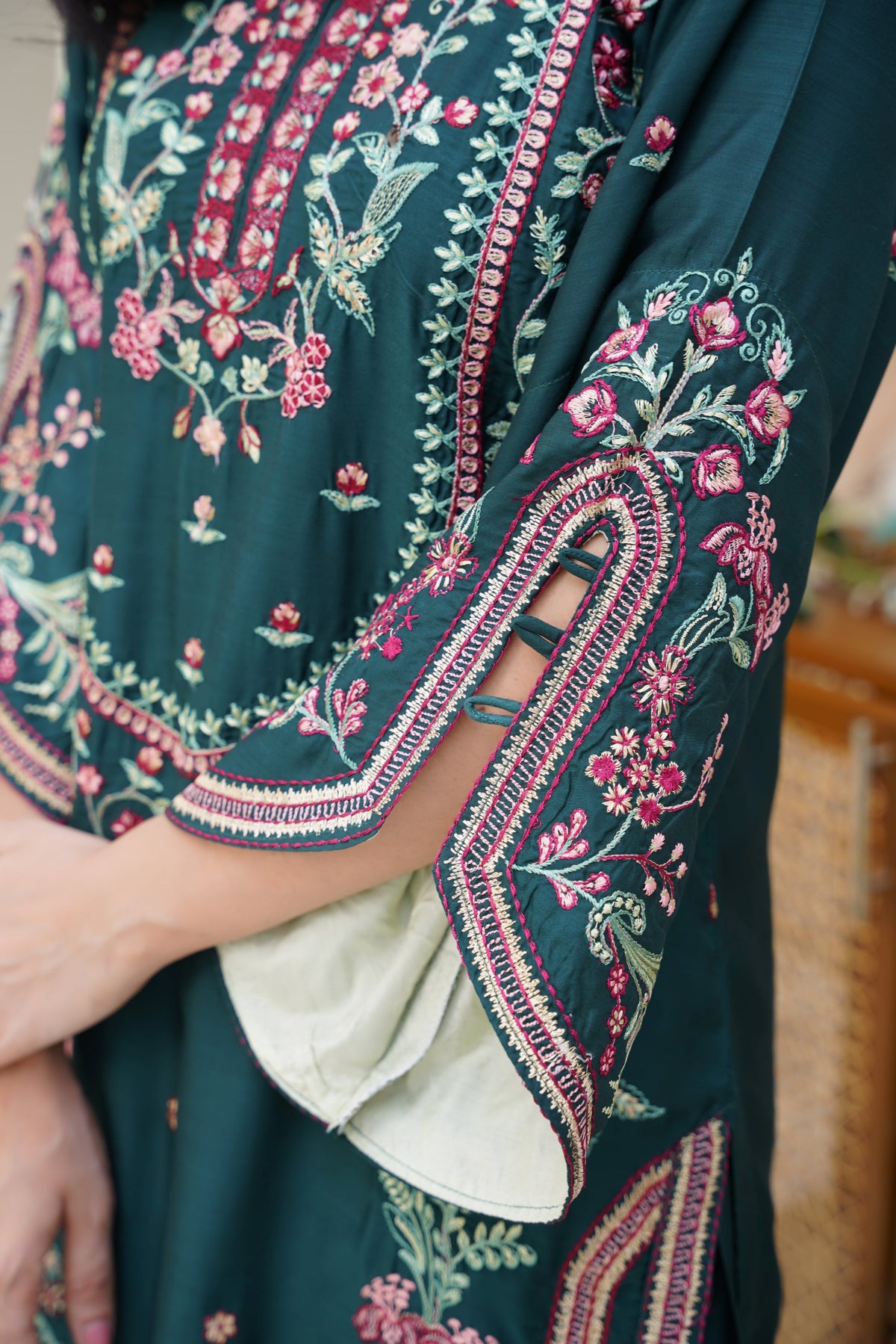 🧵 Embellishments: Fine embroidery detailing